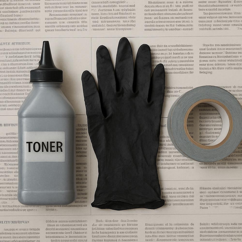 Getting the right gear is half the battle. Thankfully, the list of tools is short and simple. Before you start, gather these five essential items to ensure the process is quick and, most importantly, mess-free. Most items are included in universal toner refill kits.Toner Refill Bottle (with funnel cap)